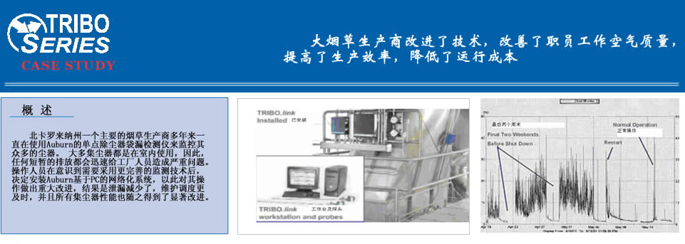 北卡罗来纳州一个主要的烟草生产商多年来一直在使用Auburn的单点除尘器袋漏检测仪来监控其众多的粉尘。 大多